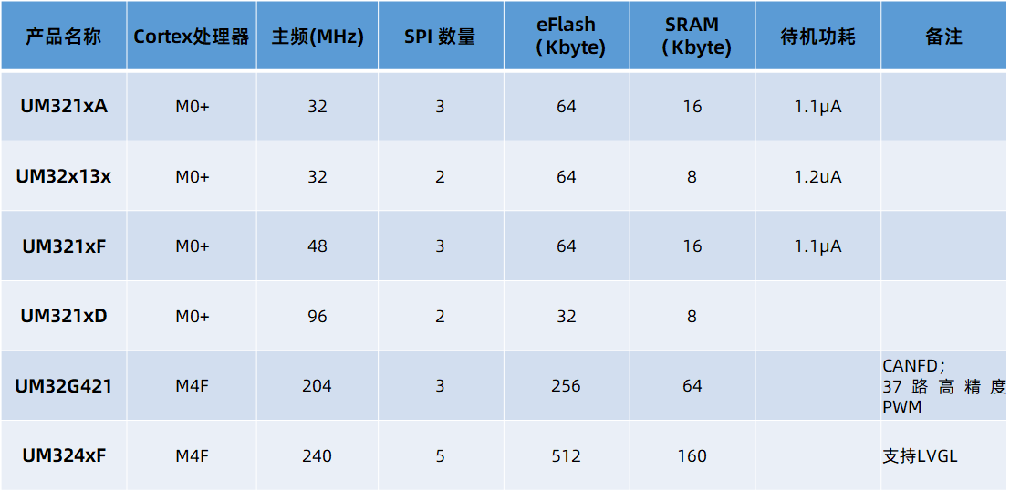 廣芯微彩屏解決方案可提供UM321xA、UM32x13x、UM321xF、UM321xD、UM32G421、UM324xF 等MCU,以滿足不同應用場景和成本需求。