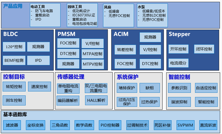 4.分層設(shè)計的軟件架構(gòu),豐富且成熟的電機(jī)算法庫,降低開發(fā)設(shè)計難度及技術(shù)門檻。