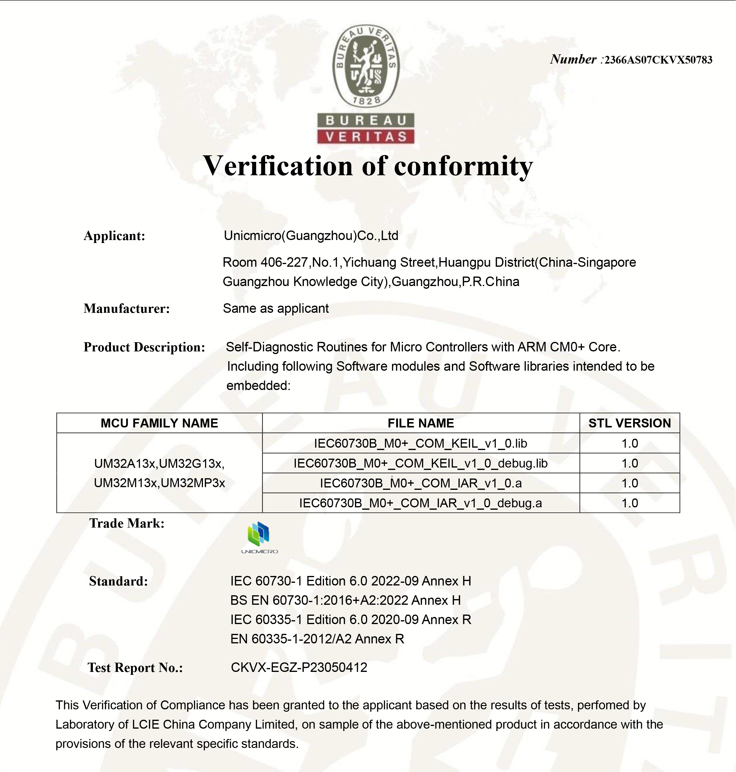 近日,廣芯微電子32位MCU系列安全軟件庫順利通過了IEC 60730和IEC 60335 B類認證。